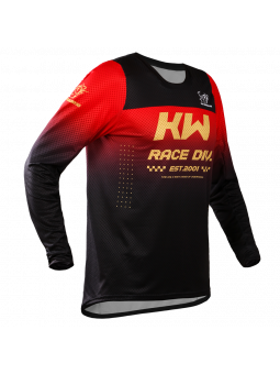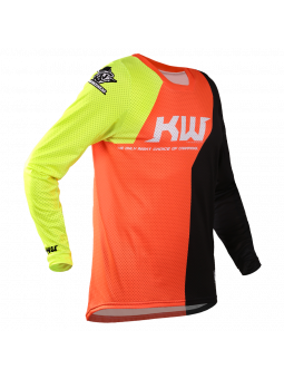 Model 7.0 is fitted to the body, the fabrics remove moisture, eliminate the feeling of coolness, ensuring air circulation. The jersey is made of three different materials. The fabrics are flexible, breathable and light. The back and sleeves are ventilated. The collar has a shape and cut reminiscent of cuffs made of an elastic band - the seams are hidden to prevent damage. The pants are also made of three materials - one basic and two additional, which are four-way stretch. They are supported by double seams at the back, which prevents tearing. MX pants have an adjustable plastic buckle that allows you to adjust the pants to your waist. All graphics are sublimated, which makes the mx set look like new for a long time.
